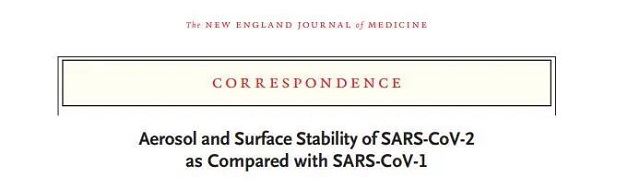 《新英格蘭醫學雜志》上發表的一項最新研究顯示,新冠病毒可以懸浮在小于5微米的飛沫中(即氣溶膠)約半小時,然后落下來并停留在物體表面長達數小時。