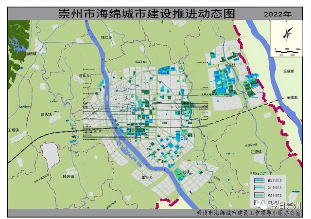 全域推進海綿城市建設,統籌開展防洪排澇設施、綠色住區、城市更新、老舊小區改造等重點項目建設,最大程度上保障山水林園田等生態本底自然生態空間格局的完整性。截至2022年末,崇州市共有海綿城市建設項目389個,其中已完工項目153個,達標面積11.92平方公里,占建成區面積比例為36.1%。