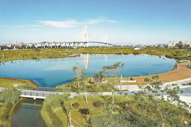 “公園設(shè)計(jì)時(shí)便考慮到了這一點(diǎn),通過園內(nèi)池塘的水流調(diào)蓄功能、透水混凝土路面的滲水功能、綠地草坪草溝的凈水功能,能有效解決內(nèi)澇難題。”汕頭市濠江區(qū)建設(shè)工程代建中心主任張漢標(biāo)表示,公園內(nèi)的海綿體系如同“毛細(xì)血管”,雨水經(jīng)此進(jìn)入市政管道、排入海水中,從源頭控制雨水徑流,增加末端調(diào)蓄空間約2萬立方米,達(dá)到雨水的滲透、滯留、凈化,實(shí)現(xiàn)“小雨不積水,大雨不內(nèi)澇”。