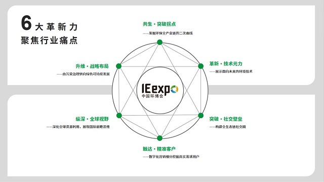 為適應(yīng)當前的發(fā)展形勢,中國環(huán)博會IE expo將持續(xù)推進六大能力的自我革新,即:一、拓展數(shù)智化等跨界產(chǎn)業(yè)與傳統(tǒng)環(huán)保產(chǎn)業(yè)的共融交集,提升平臺“共生力”,發(fā)掘環(huán)保全產(chǎn)業(yè)鏈內(nèi)的發(fā)展第二曲線;二、由污染治理轉(zhuǎn)向綠色可持續(xù)發(fā)展,培育在碳中和領(lǐng)域的戰(zhàn)略布局,提升平臺“升維力”;三、展出面向未來的環(huán)境技術(shù),提升平臺“革新力”,提升環(huán)??萍紕?chuàng)新動能;四、深化IFAT全球資源的利用,展現(xiàn)國際前瞻思維,提升平臺“視野力”;五、創(chuàng)造平臺打破創(chuàng)新鏈、產(chǎn)業(yè)鏈、資金鏈、人才鏈的融合壁壘,提升平臺“社交力”;六、深化數(shù)字營銷體系,配合發(fā)起關(guān)鍵營銷戰(zhàn)役,精準聚攏真實需求用戶人群,提升平臺“觸達力”。