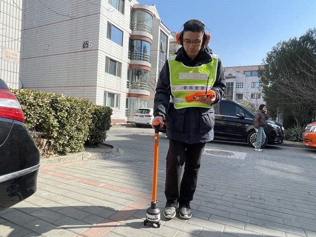 除了高科技,針對使用獨立計量區的社區,供水管線漏損監測也保留著傳統的人工監測方式。周政介紹,當獨立計量區向后臺發出報警后,工作人員根據衛星掃描圖紙和地理信息系統劃定的范圍,使用聽漏儀現場最終確定漏點的準確位置。