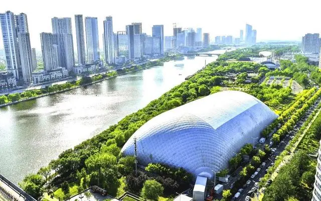 一是規(guī)模最大。氣膜長165米、寬80米、高37米,氣膜內(nèi)最大凈高差達(dá)60米,建筑面積13200平方米,氣膜展開面積達(dá)21000平方米。