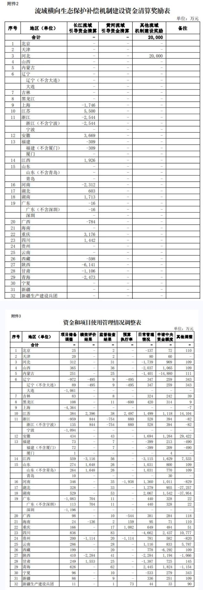 2.流域橫向生態保護補償機制建設資金清算獎勵表