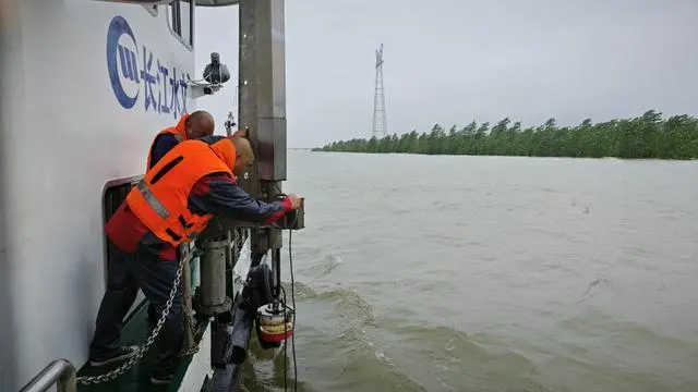 長江委安裝流量監(jiān)測儀器,準備高洪測驗。水利部供圖