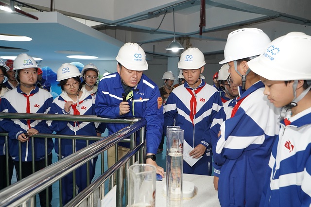經(jīng)過參觀,同學們了解到,這座“看不見”的再生水廠如今已成為城市“綠肺”,也將進一步利用和創(chuàng)新污水凈化和利用技術,為水資源循環(huán)利用交出新的“答卷”。