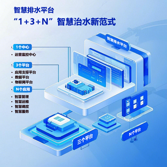 智慧排水平臺構建了具有中山特色的智慧排水“1+3+N”總體框架。即1個區域運營監控中心,3個平臺(物聯網平臺、數據平臺、應用支撐平臺)、N個業務應用模塊,實現了排水業務感知、運維、調度及決策支持的一體化全程智能管控。