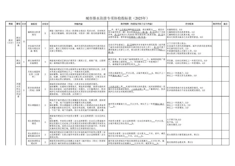 附件:城市排水防澇專項體檢指標(biāo)表(2025年)