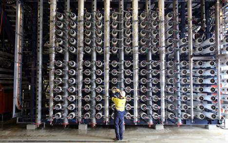 在操作的核心部分:威立雅技術(shù)人員檢查安裝在撬裝壓力容器中的反滲透膜。