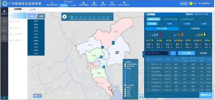 三、社會效益 “智慧排水”已建成“排水設施全覆蓋管理、城市內澇全周期管控、設施運行全時效監(jiān)控、預報調度有模型輔助”的管控體系。截至2024年底,利用項目成果,廣州市共啟動防暴雨、防風、防汛等應急響應579輪次,協(xié)助安排值班排班590天,發(fā)布各類通告簡報及防御簡報8664條,積水事件生成及處置632宗,協(xié)助生成市級一雨一報53輪次,成功抵御臺風“摩羯”“蘇拉”“海葵”等極端天氣,未出現(xiàn)重大災情和人員傷亡。作為住房城鄉(xiāng)建設部首批新城建排水智能化專項試點和廣州首批20個新城建優(yōu)秀案例,項目的創(chuàng)新示范效果顯著,為其他城市提供了寶貴經(jīng)驗。