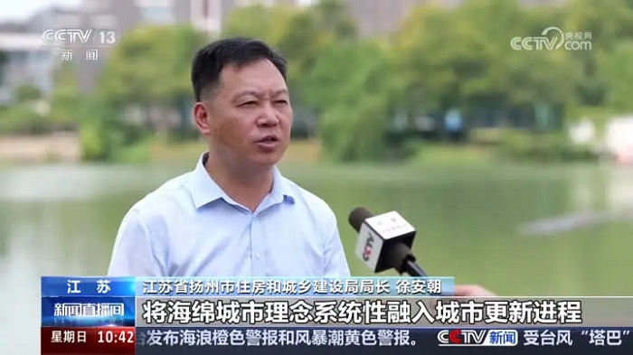 9月7日,央視新聞頻道《新聞直播間》欄目播出專題報道《新聞觀察:海綿城市如何更具“彈性”?》,聚焦將“+海綿”理念貫穿城市建設多領域的實踐路徑。報道中,揚州市住房和城鄉建設局局長徐安朝分享了相關經驗。