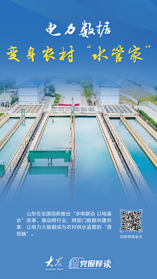 破題 電力大數(shù)據(jù)成監(jiān)管“透視鏡” 面對(duì)困局,山東以跨界融合思路破題,在全國(guó)創(chuàng)新推出“水電聯(lián)動(dòng)以電鑒水”改革,推動(dòng)跨行業(yè)、跨部門數(shù)據(jù)共建共享,讓電力大數(shù)據(jù)成為農(nóng)村供水監(jiān)管的“透視鏡”。趙琳介紹,省水利廳與國(guó)家電網(wǎng)山東省電力公司近日聯(lián)合印發(fā)的《關(guān)于開(kāi)展“水電協(xié)同以電鑒水”專項(xiàng)行動(dòng)賦能農(nóng)村供水保障與鄉(xiāng)村治理現(xiàn)代化的通知》,標(biāo)志著這一改革正式落地。