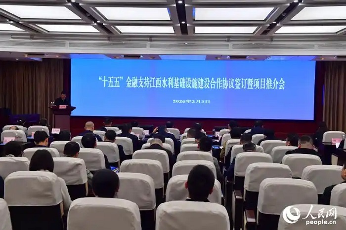 “十五五”金融支持江西水利基礎(chǔ)設(shè)施建設(shè)合作協(xié)議簽訂暨項(xiàng)目推介會(huì)在江西省水利廳舉行。人民網(wǎng)記者時(shí)雨攝