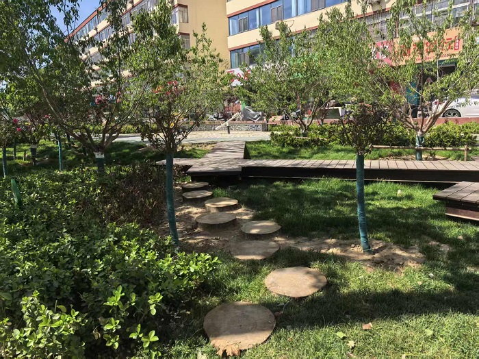 在景觀打造上,胡堂排干暗涵上方海綿改造項(xiàng)目深度融合生態(tài)底色與美學(xué)質(zhì)感,科學(xué)搭配了喬、灌、草及各類花卉,構(gòu)建起高低錯(cuò)落、層次豐富的綠植景觀。項(xiàng)目依托爬墻月季點(diǎn)綴木質(zhì)廊架,打造別致立體花墻,藤蔓交織、繁花相映;通過合理優(yōu)化植物布局,豐富季相變化;蜿蜒順暢的休閑健步甬道貫穿全程,串聯(lián)起沿線居住片區(qū)、沿街商業(yè)、城市道路與公共空間,讓市民可漫步、可休憩、可賞景;精致小巧的休閑小品點(diǎn)綴其間,與透水甬道、綠地花卉相映成趣。同時(shí),還科學(xué)配置了兒童游樂設(shè)施,完善全齡友好空間功能。